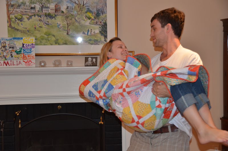 Hurricane Irene resulted in at least one good thing. I finished Emily's quilt. Emily and Kyle has a spirited celebration of the quilt!