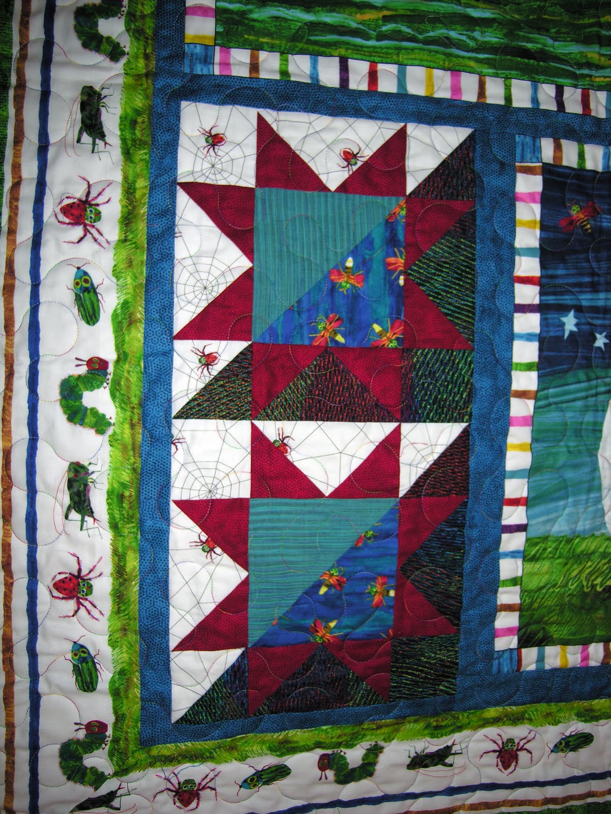 I love the way the quilt turned out. It's definitely big enough to keep a young boy warm at night while he dreams of bugs and fireflies.